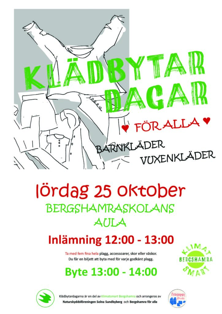 Kom till klädbytardagen den 25 oktober i Bergshamraskolans aula, Hjortstigen 1 i Solna.